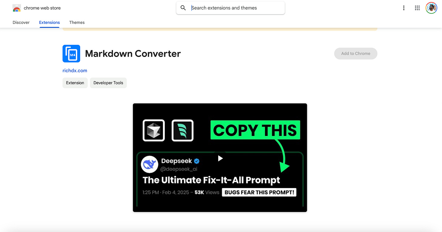 So, I started engineering my prompt to build this chrome plugin. Thirty minutes later, I had the first version of Markdown Clipboard, a Chrome extension that lets you copy website content—code, text, whatever—and instantly format it as markdown. No more weird spacing, missing backticks, or broken formatting.
